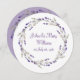 Coroa de lavanda em fundo branco para um convite de jantar de aniversário de casamento.