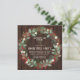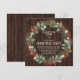 Coroa festiva de azevinho e frutos silvestres com fundo de madeira rústica convites de festa de Natal rústicos. Estes convites de festa de Natal country charmosos e antigos são facilmente personalizados para o seu evento, basta adicionar seus detalhes no estilo de letra e cor, e texto de sua escolha.