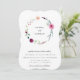 Folia de jardim verde em aquarela bonita e flores delicadas em tons de joia rosa, fúcsia e magenta, convite de casamento. O verso do cartão apresenta cor verde pesto sólida.