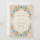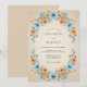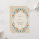 Este design elegante apresenta uma vibrante coroa de flores azuis e laranjas flamejantes, acentuada com delicada folhagem verde. A obra de arte evoca um sentimento de charme rústico e beleza natural. Perfeito para uma cerimônia ao ar livre ou inspirada no estilo boêmio.