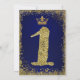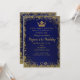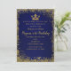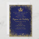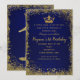 Convite Coroa de Glitter Azul Royal e Dourado Aniversário