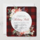 Um design de coroa floral de poinsettia em aquarela com tema de Natal rústico e elegante, com texto em letra cursiva e um fundo floral coordenado. Um tema acolhedor e elegante perfeito para as festividades de fim de ano.
