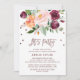 Este cartão de convite de outono com coroa de flores em dourado rosa "Let's Party" é perfeito para um evento ou festa de verão ou outono. O design apresenta um deslumbrante buquê de flores cor-de-rosa, laranja pêssego e borgonha marsala com tipografia em folha de dourado rosa falsa e confetes. A parte traseira apresenta uma linda coroa de flores com as palavras "Let's Party".
