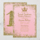 Convite Coroa de Purpurina Rosa e Dourado Festa de 16 Anos