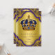 Convite de batismo de príncipe azul royal e dourado com coroa azul e dourada em um belo fundo de redemoinho azul royal e dourado. Este convite de batismo de príncipe azul e dourado é facilmente personalizado para o seu evento adicionando detalhes do evento, estilo de fonte, tamanho e cor da fonte e texto.
