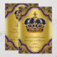 Convite Coroa do Príncipe Menino Batismo Azul Royal e Dour