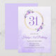 Convite Coroa Dourada Floral Roxo Pastel Aniversário de 31