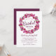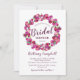 Convites elegantes para chá de noiva de casamento com um fundo branco minimalista elegante, uma coroa de tulipas rosa aquarela e um modelo de festa de noiva de ameixa moderna.