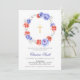 Convite de Batismo de Bebê Floral Azul e Vermelho de Inverno. Caracteriza uma coroa de peônias em aquarela. Itens correspondentes disponíveis.