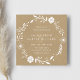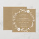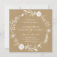 Este convite quadrado de casamento apresenta uma coroa floral botânica rústica branca em um fundo de papel kraft marrom falso.