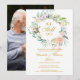 Com uma delicada grinalda de verde floral em aquarela, este convite de renovação de votos de aniversário de casamento botânico chic pode ser personalizado com as informações do seu aniversário especial. O verso apresenta a sua foto especial. Concebido por Thisisnotme©