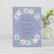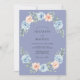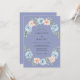 Uma delicada coroa de flores de pêssego suave e azul vinca embeleza este design elegante. Folhagem verde exuberante se entrelaça com as flores, criando uma atmosfera romântica e etérea perfeita para uma união de primavera ou verão. Esta obra de arte evoca um senso de beleza terna e charme atemporal.
