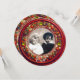 Frutas elegantes e clássicas, arte refinada vibrante do Renascimento, obra-prima da Bottega della Robbia (Florença - Itália). Modelo de convite de foto circular/ redondo sofisticado em cores vermelho, dourado, amarelo e verde com pedras de topázio amarelo brilhante 3D facilmente personalizável com seu texto e iniciais. Design artístico e legal, fácil de personalizar como convite de cerimônia de casamento, cartão de anúncio nupcial, cartões de mesa, cartão de "salve a data", cartão de agradecimento, chá de bebê, chá de noiva, festa de 16 anos, festas de Quinceanera, Bat Mitzvah, chá de noivado romântico, Natal, feriado, escritório, reuniões de família, celebrações de Ano Novo, aniversários, encontros, formaturas escolares, concerto, recital ou qualquer outro evento que