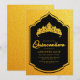 Convite Coroa luxuosa, preta e Quinceanera Dourada