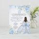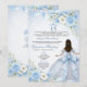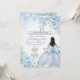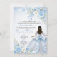 Convite de Festa de Aniversário Floral Coroa Dourada Quinceañera 15 Anos com Laço Azul Poeirento