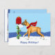 Este "Fawn Boxer" enrola na neve para levar suas Cartões de natal para a caixa de correio vestindo seu lenço vermelho de malha. Trabalho de arte de Natal de Danes-R-Us trará um sorriso ao rosto de qualquer amante de cachorro nesta temporada.