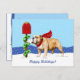 Natal com Bulldog. Celebre a temporada com este Bulldog levando seu correio de férias para a caixa de correio vestindo seu lenço vermelho de tricô e rolando pela neve.