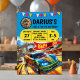 Amplie o entusiasmo com esta emocionante design de aventura de carros de corrida, apresentando carros de corrida dinâmicos acelerando em uma faixa vibrante com sotaques vermelhos e azuis. Perfeito para qualquer celebração especial de uma criança, esta obra personalizável traz uma vibração de alta energia para o partido. Com seu estilo recheado de ação, é ideal para um evento inesquecível. Inclui espaço para os detalhes do evento e informações de RSVP. Personalize-o para criar um entusiasmante guardião para o seu pequeno racer e hóspedes!