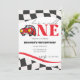 Apresentamos o nosso convite de primeiro aniversário de carro de corrida personalizável!