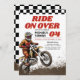 Corrida editável sobre o convite de aniversário da motocross Kid, qualquer festa do garoto da DIRT BIKE ao ar livre, tema de aventura da moto à lama