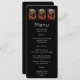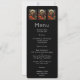 Cartão de menu com uma coruja legal com um olhar piercing. Uma lua de cheio nas costas com um jardim de flores vermelhas.
