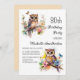 80 convite de aniversário com pinturas de uma coruja fofa sentada entre flores nos ramos de uma árvore. Entre em contato comigo para obter assistência com suas personalizações ou para solicitar outros produtos Zazzle correspondentes ou coordenadores para sua celebração.