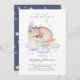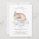 Pequena estrela brilhando... Convide a família e amigos para o seu evento com este belo convite para a floresta. Apresenta ilustrações em aquarela de ursinho bebê dormindo, nuvens, estrelas e lua. Personalize adicionando o evento, nome, hora, data, local e outros detalhes do evento. Personalize a parte de trás do convite alterando o padrão para uma foto ou qualquer outra imagem. Os textos são perfeitamente editáveis para todos os efeitos. As cores do convite são perfeitas para um chá de fraldas Boy.