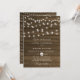 A Corda Rústica Do País Acende O Convite Para Casamento De Madeira. Um convite de casamento rústico e caprichoso com a luz branca de cordas sobre fundo de madeira falsa. Este convite totalmente personalizável é perfeito para o casamento temático no rustic do país, outono e chique.