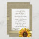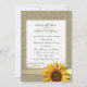 O convite de casamento rústico de Burlap e Sunflower é personalizável com seu próprio texto e estilo de fonte.