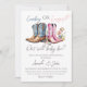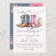 Elegante O que será Bebê como vaqueiro ocidental ou vaqueira temia gênero Revise o convite com cores d'água rosa e botas azuis de vaqueiro. Produtos correspondentes que você pode encontrar na coleção.