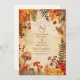 Uma composição quente e convidativa no outono que inclui abóboras aquosas, folhas de outono, bagas e folhagem sazonal em tons ricos de colheita. Perfeito para uma celebração de casamento outono aconchegante, rústica ou de fazenda.