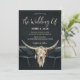 Estes modelos de cartas chatas únicos de casamento, 5 horas por dia, 7 dias por semana, que você pode personalizar apresentam um touro rodeado, um touro de vaca, cinza de árvore, que grunge, design. O estilo de vintage, velho oeste selvagem, inspirou um design de animais legal, de tendências fazendas. Rsvp on-line na parte traseira. Imagem copyright Marg Seregelyi Fotografia.