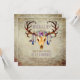 Convite de casamento rústico do sudoeste com pena e jóia pendurada no crânio de veado em um fundo rústico vintage. Este convite de casamento com crânio de veado e galhada ornamentado e rústico é facilmente personalizado para o seu evento, basta adicionar os detalhes na fonte, cor e redação de sua escolha.