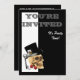 Esqueleto engraçado de gótico steampunk jogando cartas e dados, com um clássico fundo preto e branco. Perfeito para convites de aniversário, despedida de solteiro, formatura, festas com temas alternativos, vitorianos, góticos, steampunk, motoqueiros e rock. Personalize facilmente todo o texto para criar um convite personalizado único para o seu evento. Visite a LOJA LEATHER_AND_LACE para produtos correspondentes e mais presentes e produtos alternativos de casamento e festa.