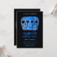 Convite Crânio Engraçado Gótico Azul Negro Dia das Bruxas
