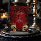 Entra numa noite de elegância escura com esta cortina vermelha gótica, design do Halloween. Apresentando drapões de veludo dramáticos, rosas pretos e crânios adorados em ouro, ele define o tom perfeito para uma celebração maravilhosamente glamourosa. Personalize com seus detalhes e receba uma noite inesquecível de mistério e macabro.