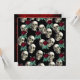 Crânios brancos e rosas vermelhas com folhas verdes em um fundo preto fazem disso um design único e impressionante.