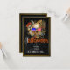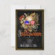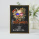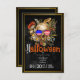 Skulls Góticos no Convite de festas de Figurino de Hats Halloween, Planeje uma Festa de Figurino Gótico Vitoriano com este convite de festas temático esquisito. Tem crânios masculinos e femininos vestidos de chapéus finos com fundo dourado marmoreado. O emparelhamento de tipo Vintage adiciona estilo autêntico ao design vintage. O texto de exemplo usa um pouco de humor de Halloween convidando seu convidado a "pegar seus ossos aqui". Personalize o modelo de texto com os detalhes do seu partido.