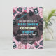 Prepare-se para uma celebração comovente com este convite de festas divertido e moderno de fantasia de Halloween. A frente apresenta um fundo cor-de-rosa cativante, adornado com um padrão eclético de elementos místicos, incluindo planchetes, poções, símbolos de leitura de palmas, crânios, cristais, cartões de tarô e velas. Esses designs encantadores se juntam para criar uma atmosfera mágica, perfeita para dar o tom à sua espantada soirée. Cada elemento se destaca vividamente, fazer o convite pop com um toque de charme de Halloween e atração mística. As fontes divertidas do convite acrescentam ao sentimento festivo, com uma mistura de fontes de bolhas azuis e verdes divertidas complementadas por fontes brancas regulares e bolhas. Esta combinação colorida traz uma dose extra de personalidade para o design, garantindo que os seus convidados serão atraídos para o seu estilo atraente. A mistura de fontes adiciona uma vibração e juventude que estabelece o palco de uma noite de fantasias, diversão e festividades. O verso do convite continua o tema místico, com o mesmo padrão intrigante em relação ao fundo rosa. Este design coeso gravatas o convite juntos, dando-lhe um visual acabado e polido que é ideal para qualquer evento de Halloween. Perfeito para aqueles que amam uma reviravolta moderna nas imagens tradicionais do Halloween, este convite mistura elementos assustadores com um toque de magia e capricho, assegurando que os vossos convidados saibam que estão numa noite de diversão e encanto.