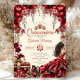 Convite Cream and Red Golden Tiara Floral Quinceañera