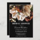 Este elegante e escuro chá de panela floral apresenta belas magnólias de creme e outras imagens florais de ferrugem e cobre sobre fundo preto, e elegante caligrafia de guião com letra de mão. Fácil de personalizar com suas próprias informações, e a cor de fundo também é personalizável. Estas convites de chá de panela são perfeitas para a noiva planejando um casamento de vassoura, casamento de jardim, casamento vintage, casamento romântico, casamento floral, ou para qualquer noiva que ame tons de joias e flores. Fácil de personalizar com suas próprias informações, e a cor de fundo também é personalizável. Design de T.K. em frente.