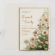 Welcome your loved ones with the sophisticated charm of this vintage-inspired botanical masterpiece. The design features a stunning cluster of ivory Astrantia blooms on the right side, their delicate petals accented by a soft green watercolor wash at the base. Set against a rich, leathery cream textured background, the composition is elegantly framed by a double gold glitter border. Tiny pink buds and a whimsical dusting of shimmering gold specks add a touch of romance and light, creating a high-end, organic aesthetic that feels both grounded and luxurious. This is a wedding invitation perfectly suited for an elegant manor wedding, a romantic garden ceremony, or a sophisticated vintage-themed celebration. It is an ideal choice for couples looking to blend earthy botanical elements with timeless gilded accents.