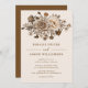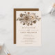 Convites elegantes de casamento com flores de estilo boho em tons de marfim e marrom profundo em um fundo colorido de creme. Layout de texto simples com um cabeçalho floral bonito. Perfeito para um casamento outono ou para qualquer casamento com uma paleta de cores quente e neutra.