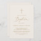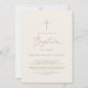 Este delicado convite para batismo com cruz creme e de caligrafia dourada é perfeito para um batismo de bebê moderno. O design minimalista romântico apresenta uma tipografia linda e elegante de champanhe dourado amarelo sobre um fundo creme de marfim com um visual limpo e simples.