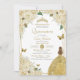 Convite Creme Dourado Borboleta Floral Rosa de Quinceanera