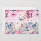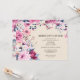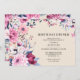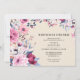 Convites de janto de aniversário elegantes com quadro botânico. Texto preto sobre fundo de marfim cercado por flores em tons de rosa, vermelho e azul.