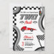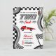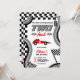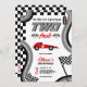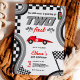 Pronto, pronto, vai! Aumente o entusiasmo do seu segundo aniversário com nossos dois convites de Corrida Rápida com bandeiras de corridas de aquarelas bonitas, faixas, carro de corrida vermelho, adicione sua foto no fundo. Prepare-se para correr para a festa ao estilo!