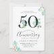 Um convite de aniversário de 50 anos divertido e fresco com eucalipto de aguarela brotando fresco ao redor das informações exclusivas do dia do aniversário.