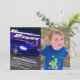 Dê a largada e corra até a linha de chegada para celebrar o aniversário do seu filho. Este convite exclusivo foi desenhado digitalmente para ilustrar um carro esportivo muito rápido em um concurso de corrida noturna sem que ninguém consiga alcançar