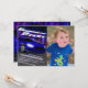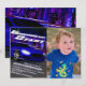Ligue os motores e corra até a linha de chegada para celebrar o aniversário do seu filho. Este convite exclusivo foi desenhado digitalmente para ilustrar um carro esportivo muito rápido em um concurso de corrida noturna na rua sem que ninguém consiga alcançar